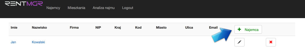 Aby dodać nowego najemcę, wystarczy kliknąć w ikone '+ Najemca' :-)